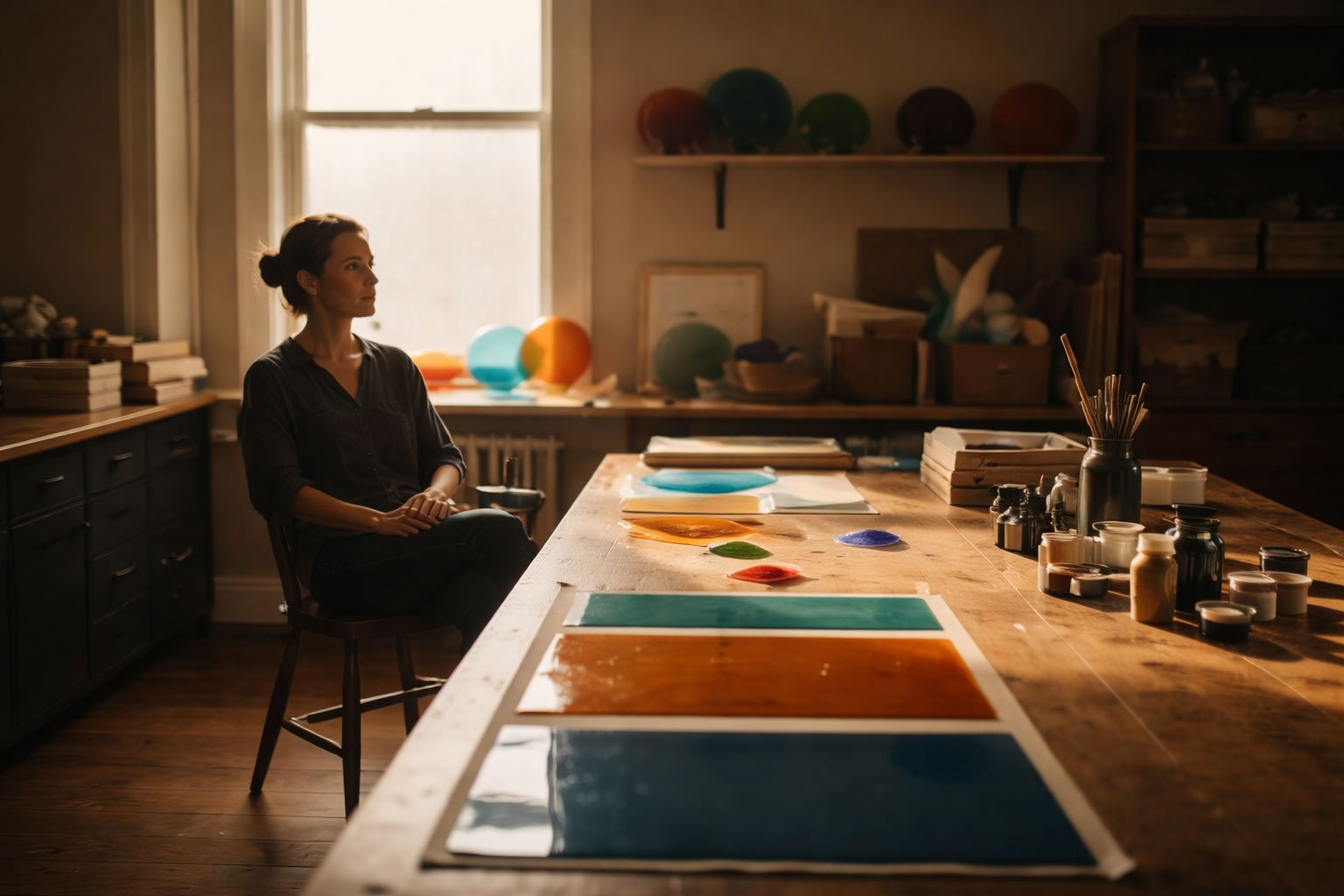 Hello, I’m Kinana. I’m an artist and have been creating for over twenty years, with art serving as both my language and my refuge. This space was born from pain and from the long, uneven process of learning how to live with it. It didn’t begin as a studio; it began as a need to survive heavy days, to sit with fire, glass, paper, and thread, and to let my hands speak when words failed. Like a phoenix, this space grew from moments of breaking, from unbearable heat, and from the slow realization that creation can carry what the heart cannot hold alone.